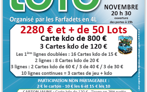 Prix 8 € par personne, 1 lot pour chaque joueur Inscription à 13h30