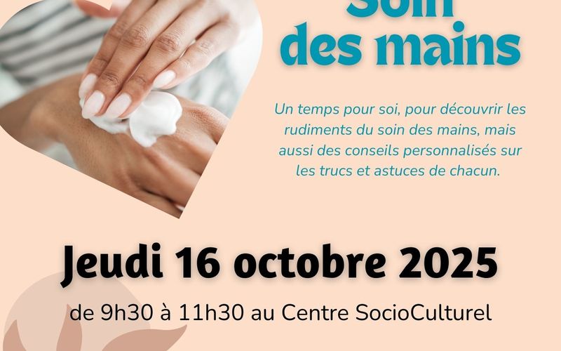 Le "Répit parental" est un moment, sans les enfants, qui permet aux parents (père et mère) de disposer d'un espace de liberté, pour souffler, se ressourcer... Ce n'est pas un luxe, mais un besoin. Le secteur Famille du Centre SocioCulturel de Nueil-Les-Aubiers, vous propose une séance de "Soin des mains" animaée par Mélissa Turner, socio-esthéticienne, un temps pour soi, pour découvrir les rudiments du soin des mains, mais aussi des conseils personnalisés sur les trucs et astuces de chacun.
