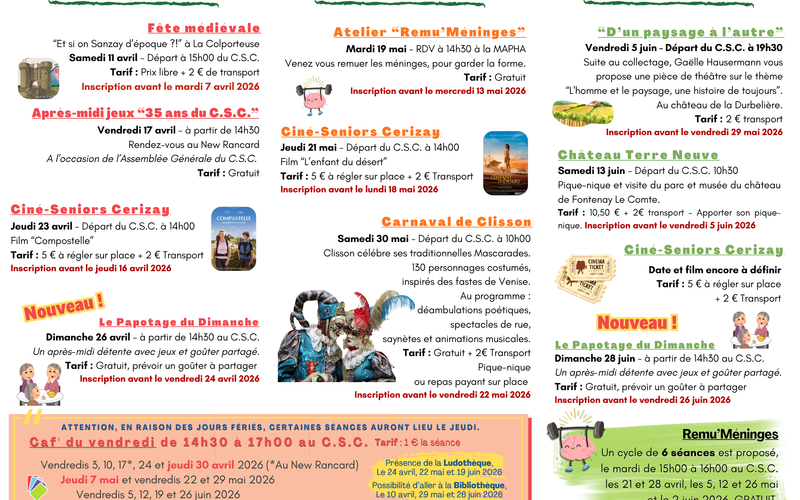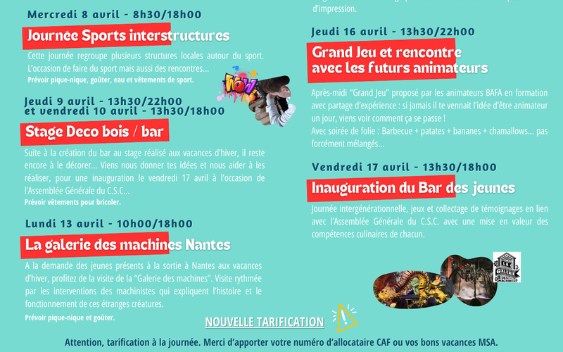 Pour plus d'information contacter l'accueil du C.S.C. au 05.49.65.42.10 ou accueil@cscnla.fr