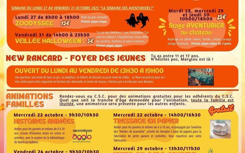 Ces rencontres gratuites, sont ouvertes à tous, seul ou en famille. Renseignements auprès de l'accueil du C.S.C. au 05.49.65.42.10 ou accueil@cscnla.fr