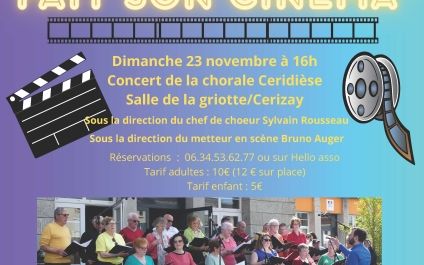 Impulsé par le Conseil des Sages et la Municipalité de Cerizay, le dispositif « Ciné-Séniors » s’adresse aux 60 ans et plus. Il a pour but de faciliter l’accès au cinéma et favoriser les échanges en proposant des séances privées : le jeudi après-midi, une fois par mois, au tarif préférentiel de 5 euros par personne.