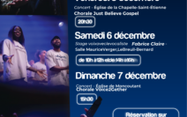 Nous avons le plaisir d’accueillir la chorale « Just Believe gospel » composée de choristes professionnels. Ils vous invitent à venir partager un moment de joie et d'émotion. Leur répertoire varié, mêlant classiques du gospel et compositions contemporaines, saura toucher le cœur de chacun. La puissance de leurs voix, combinée à une énergie communicative, promet une soirée inoubliable. Que vous soyez amateur de Gospel ou simplement curieux de découvrir ce genre musical, vous êtes les bienvenus pour vivre une expérience musicale unique et chaleureuse.