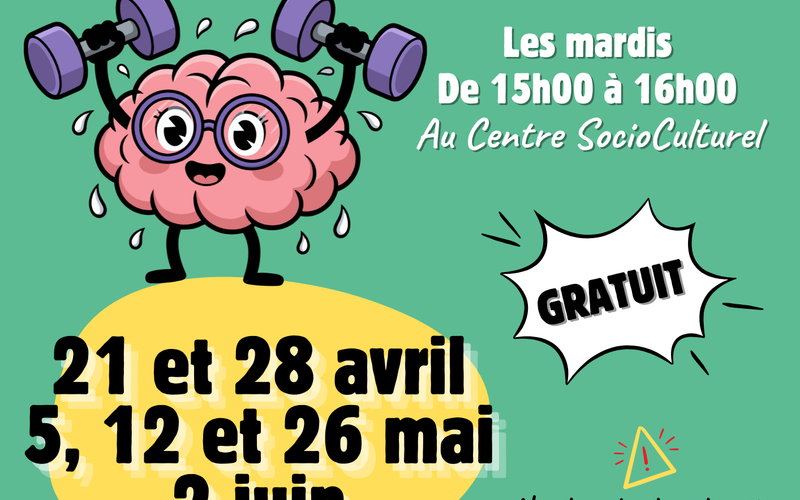 Le Centre SocioCulturel de Nueil-Les-aubiers propose en partenariat avec La Ludothèque un cycle de 6 ateliers "Remu'Méninges", les mardis de 15h00 à 16h00 au C.S.C. Gratuit. L'occasion de faire travailler son cerveau pour rester en forme !