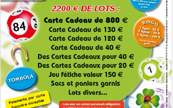-Début du loto à 20h30 -Ouverture des portes à 18h30