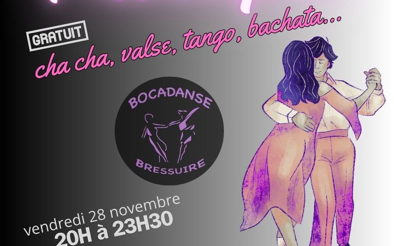 Bocadanse organise vendredi 28 novembre, de 20h à 23h30, salle des fêtes de Saint-Sauveur-de-Givre-en-Mai, une pratique sous forme d' auberge espagnole danse de salon (Cha cha, valse, tango, bachata...) avec ses adhérents et ouverte au public danseur.