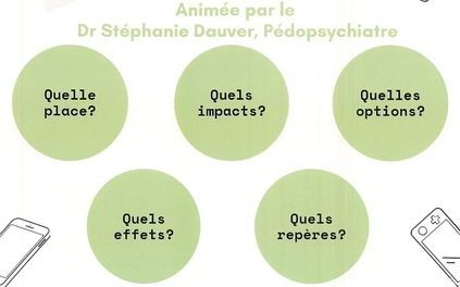 Les écrans, quelle place, quels ipacts, quelles options, quels effets, quels repères ? sur les enfants de 0 à 6 ans. Le Centre SocioCulturel de Nueil-Les-Aubiers, le Groupe Prévention Santé Nueil-Les-Aubiers Mauléon et le CPTS du Bocage Bressuirais, vous proposent une conférence sur le thème "Les écrns au quotidien de 0 à 6 ans ?", avec le Dr Stéphanie DAUVER, Pédopsychiatre, dans le cadre de la semaine sans écran.