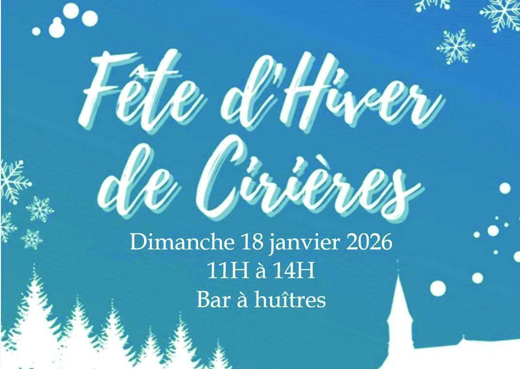 Le Comité des Fêtes de Cirières vous invite à la 4ème Fête d’Hiver le 18 janvier 2026 !
