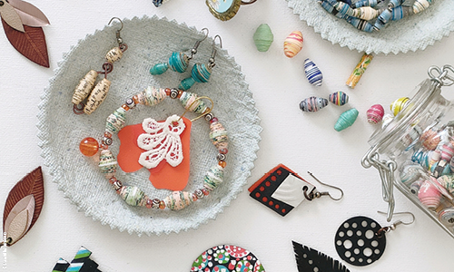 Venez créer vos propres bijoux fantaisie à partir de matériaux de récupération : papier, chambre à air, chutes de cuir, textile...