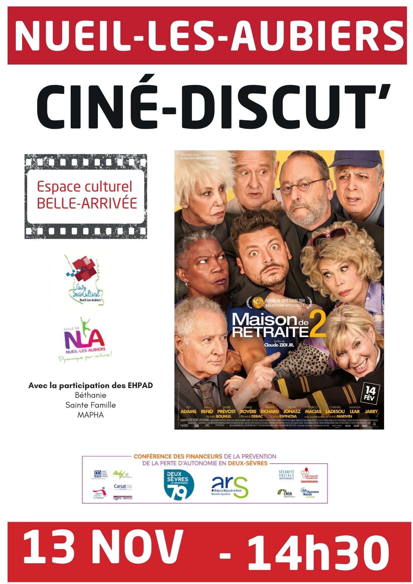 Le Centre SocioCulturel de Nueil-Les-Aubiers propose une séance de Ciné Seniors Discut', le jeudi 13 novembre à 15h00 avec la diffusion du film "Maison de retraire 2", l'occasion de profiter d'un après-midi tranquille le temps de discuter...