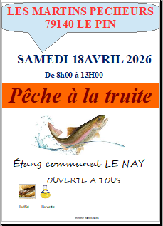 Samedi 18 Avril 2026 pêche à la truite "étang du nay" Le pin79 Début 8h00 - 1 canne - 6 truites
