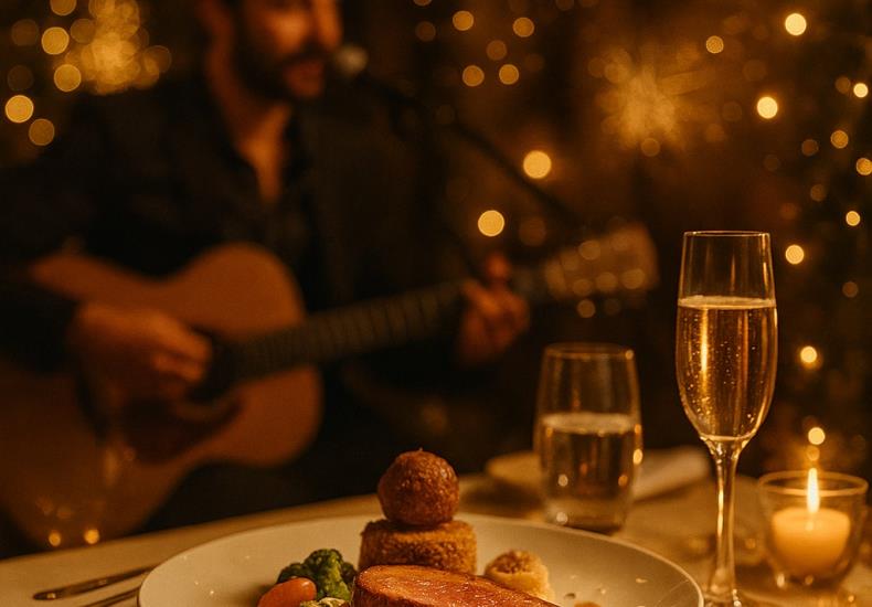 Réveillon du Nouvel An 2025 à L’ATIPI’K. Vivez un repas-spectacle unique au bord de l’eau avec Tony Ambak, guitare et voix.