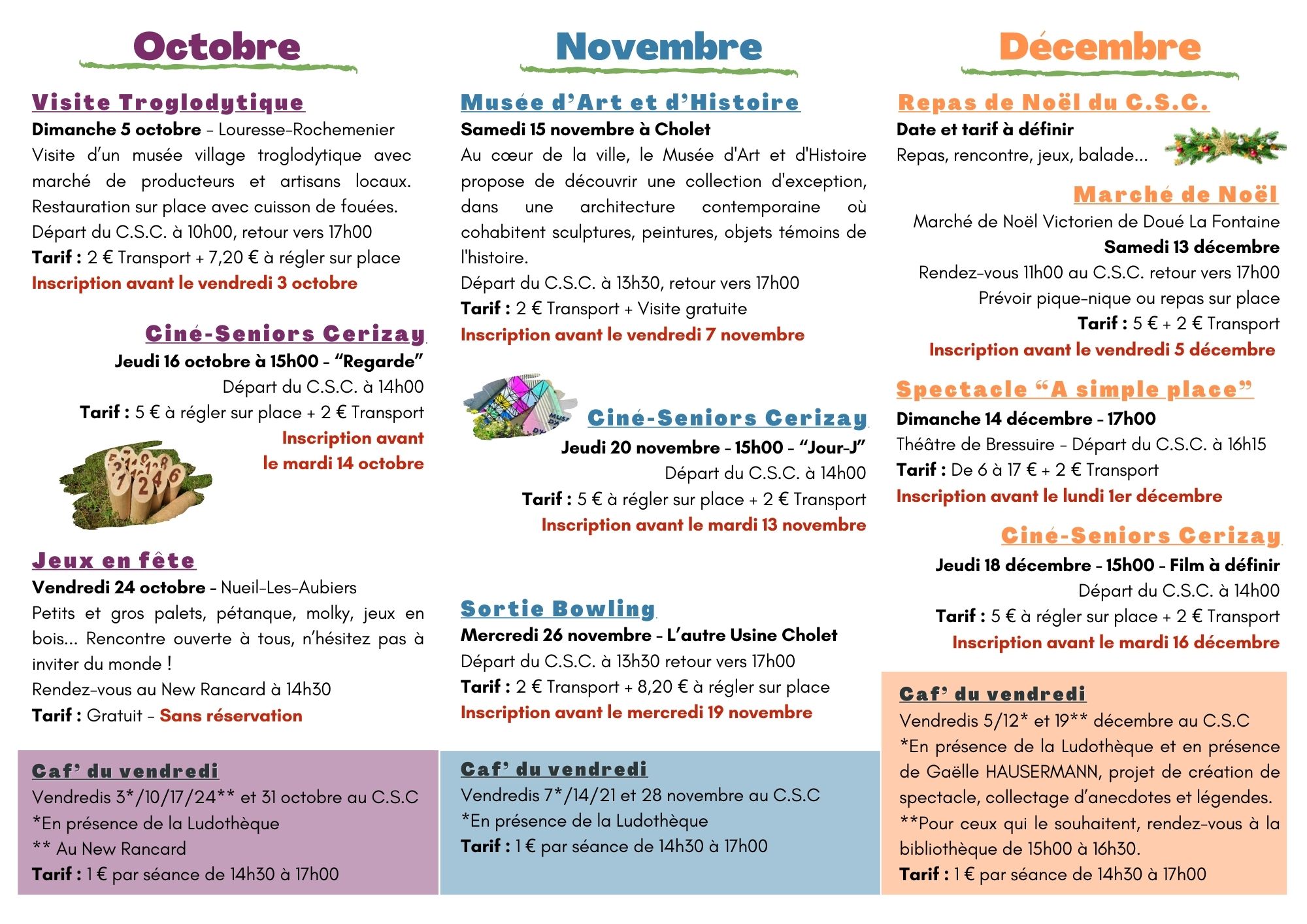 Inscripton avant le 1er décembre auprès de l'accueil du C.S.C. au 05.49.65.42.10 ou accueil@cscnla.fr