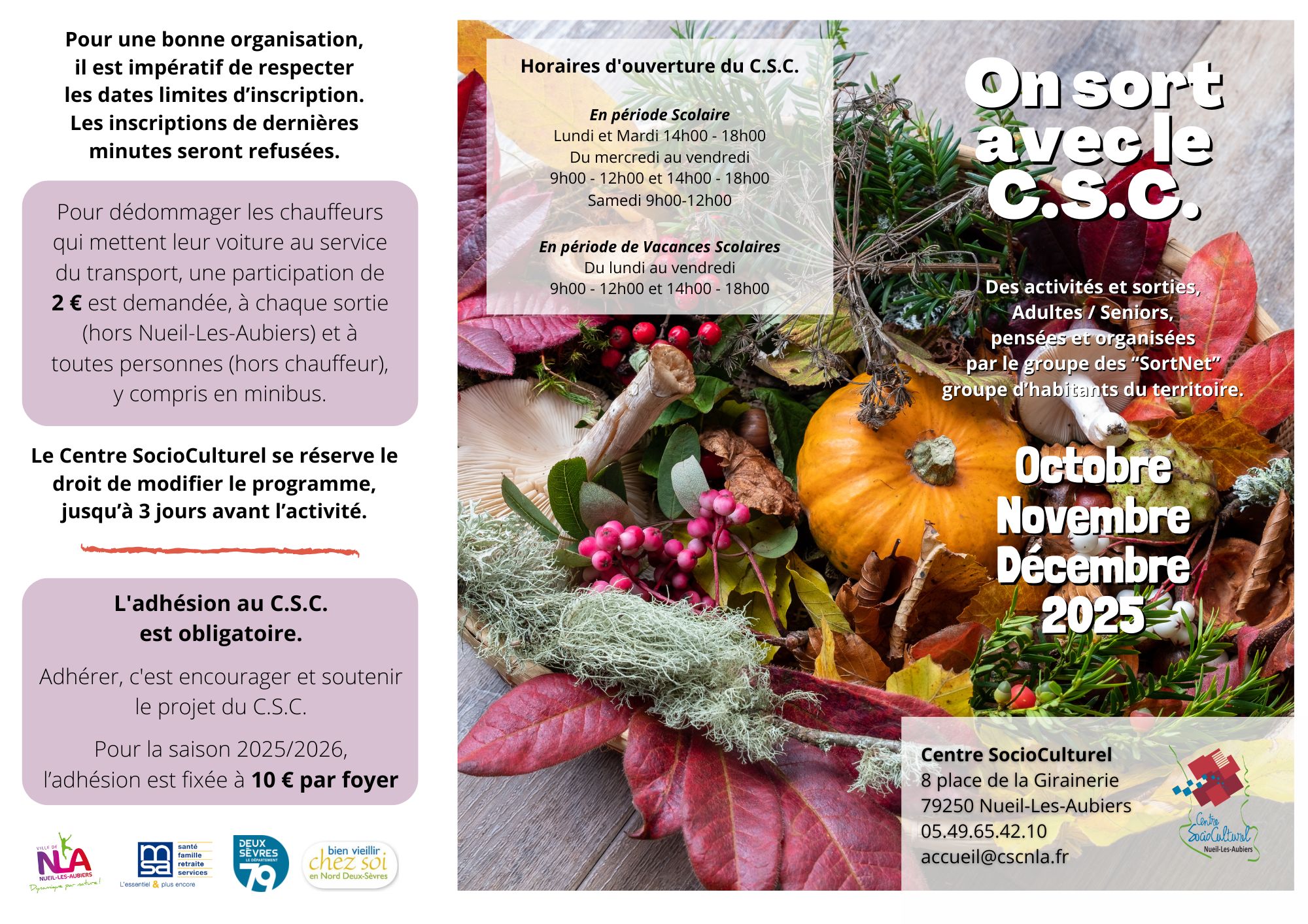 Inscripton avant le 26/09 auprès de l'accueil du C.S.C. au 05.49.65.42.10 ou accueil@cscnla.fr