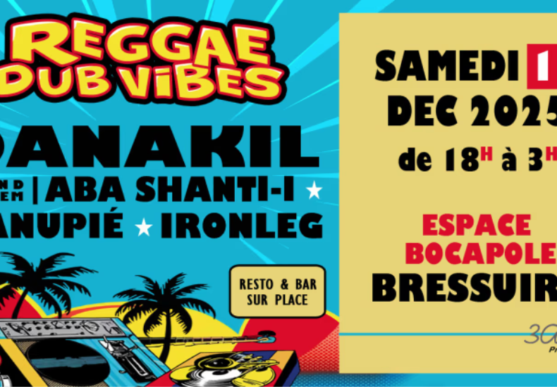 Venez passer une Soirée sous le soleil en présence de DANAKIL, VANUPIE, IRONLEG et ABA SHANTI-I au platine. Reggae - Dub et Sound system seront au rendez-vous. Restauration et bar sur place, ouverture des portes à 17 h. Réservation dans les lieux de vente habituels.