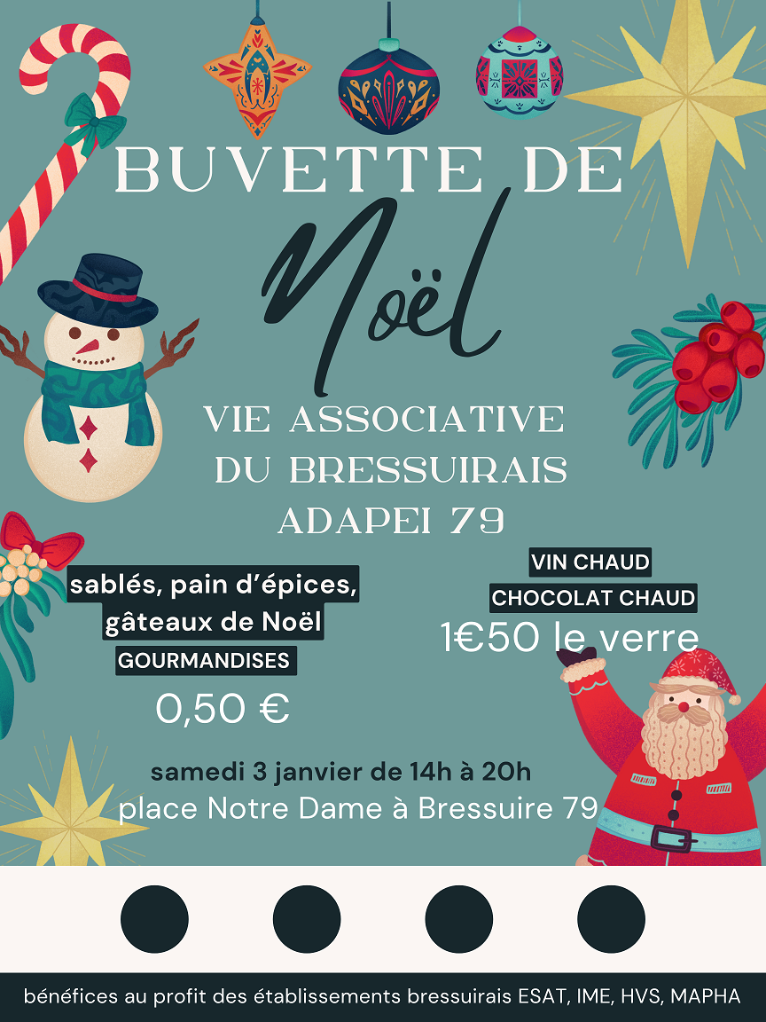 Buvette des Assoc’ : boissons chaudes proposées par les associations du Bocage Bressuirais, Place Notre-Dame, du 19 décembre au 3 janvier.