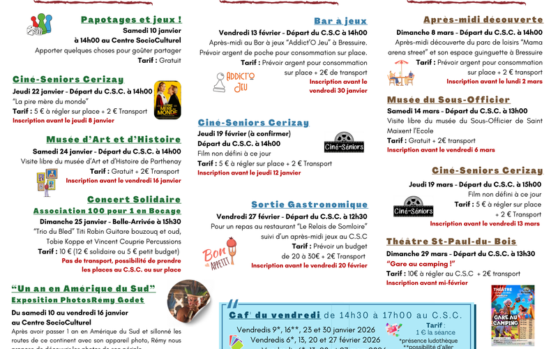 Renseignements à l'accueil du C.S.C. au 05.49.65.42.10 ou accueil@cscnla;fr