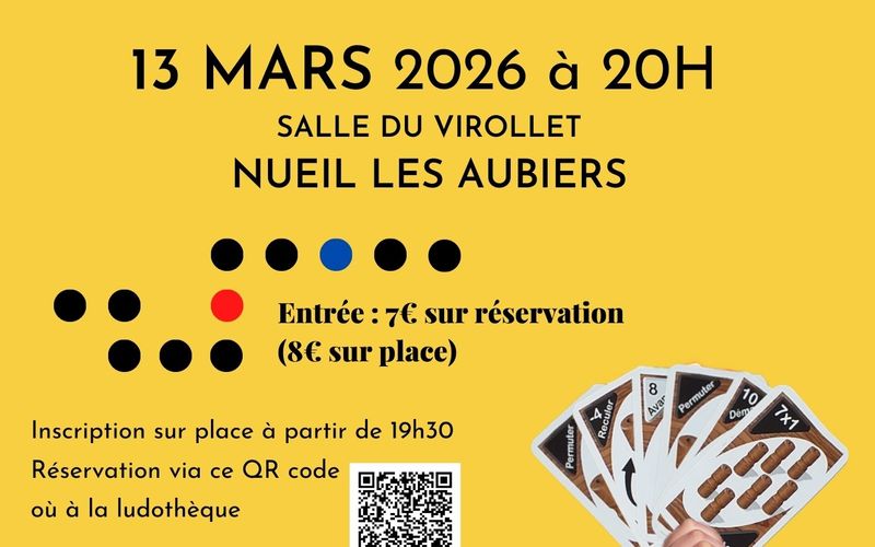 Le lundi de 14h30 à 16h30, une fois par mois au Centre SocioCulturel de Nueil-Les-Aubiers. Tarif : Adhésion au C.S.C. 10 € + 10 € (10 séances). Première séance gratuite et ouverte à tous.